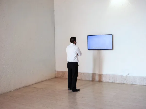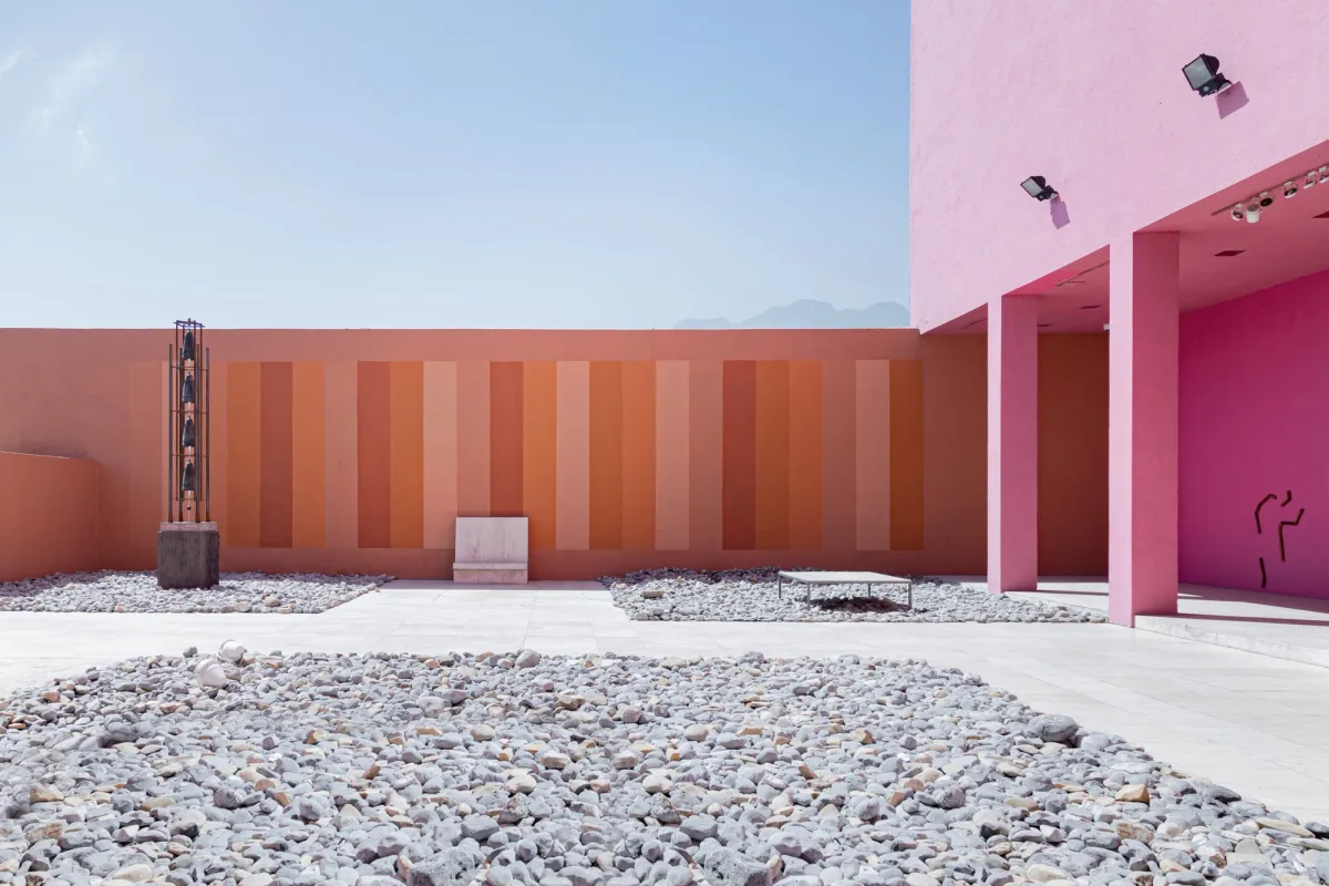 This work brings us closer to the museum apparatus itself as an economic context: a mural arrangement presents us with color variations resulting from the attempt to match the synthetic terracotta tone present in the museum's architecture through commercial color formulas. In addition to this particular operation a video anecdotally reassembles memories from the museum's staff regarding events related to the company responsible for sponsoring the painting of the venue and its desire to use these same walls as a set for an internal corporate photo shoot. Between the regulation of an earthy tone that alludes to both the landscape and the idealized assimilation of traditional aesthetics within modern Mexican architecture, the present of the museum is revealed as a complex vortex: a continuous oscillation between the artifice of modernity, the colonial traces of neighborhood in which the building is located, the incessant winds of the northeast and the always complex link that the city of Monterrey in Mexico maintains between its cultural institutions and the private sector.