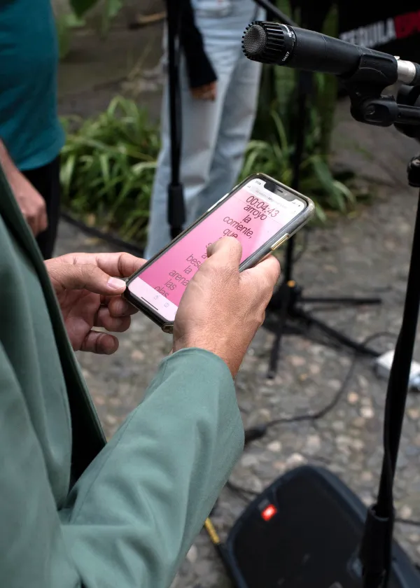 During this performance, a series of poems generated in real time by a system designed to imitate the poetic style of Rosa Espino, an imaginary poet who served as a pseudonym to general Vicente Riva Palacio, was read collectively. Giving continuity to this historical act of literary deception, a computer program analyzed the vocabulary, themes, and grammatical structure of the body of work authored by Rosa Espino to generate new texts. For this event organized in a domestic patio, the system produced passages with floral motifs that were read by local poets and the attending audience.